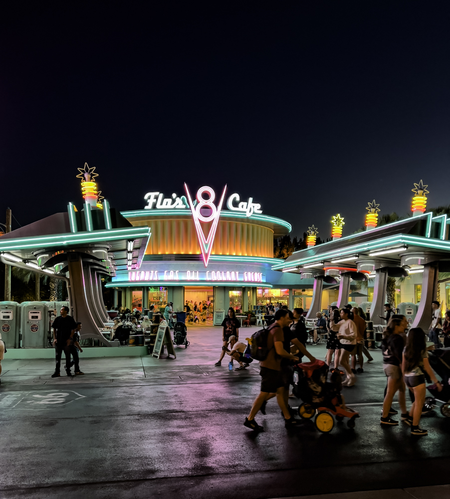 Disneyland 2022Loyd July 7, 2022Flo's at Night By Loyd SchutteMatterhorn!ScaredIt's a sign!Flo'sNeonLitEureka!ZacKatie